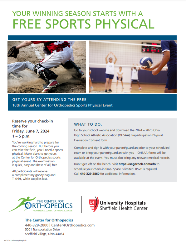 16th Annual Free Sports Physicals Friday, June 7th – 3:00pm Check-in